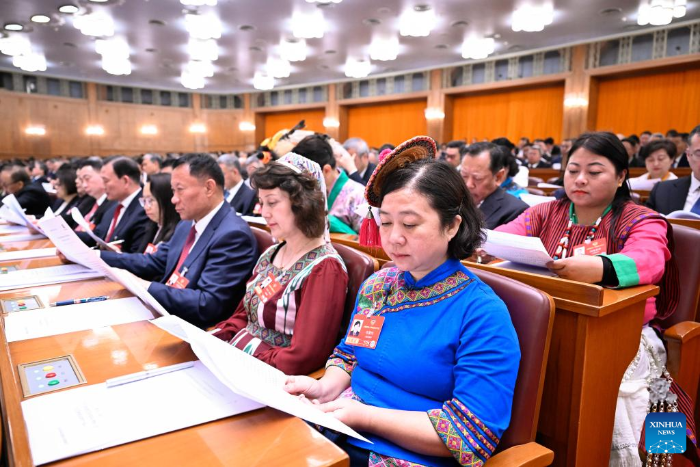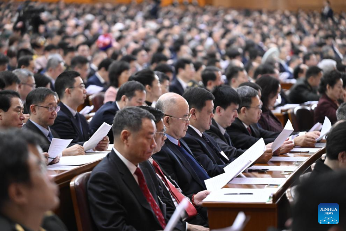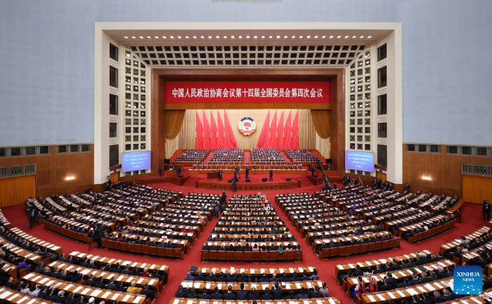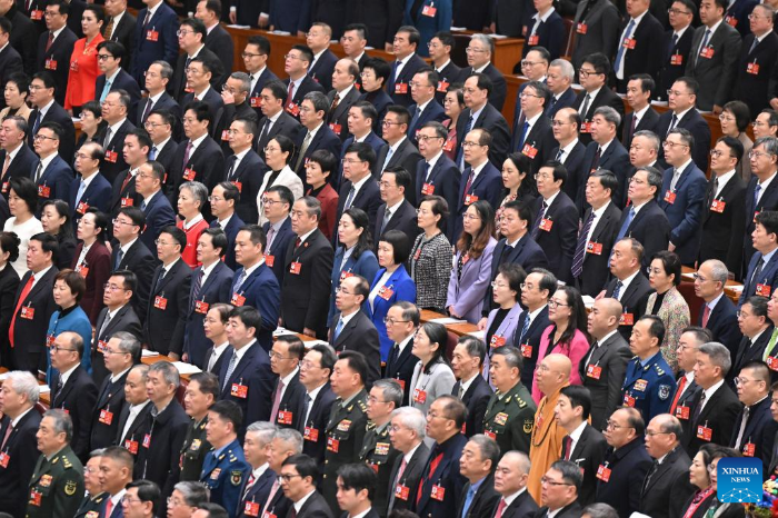 El presidente chino, Xi Jinping, junto con otros líderes, asistió a la reunión inaugural de la cuarta sesión del XIV Comité Nacional de la CCPPCh en el Gran Palacio del Pueblo.